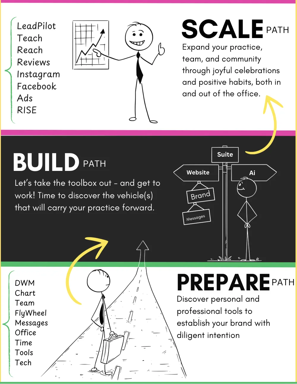 We have since refined the build of this amazing solution into The Suite Success Program—a results-driven, collaborative excellence program designed for the StaffLess Practice Journey, housed and executed within a Practice Suite Platform.